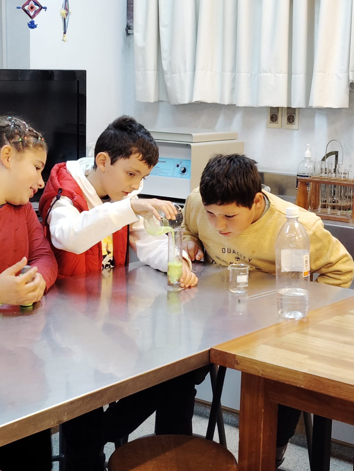 Escuela N 50 " Celestino" y Escuela N 66 Colonia " La Paz" visitan el laboratorio del I FD, científicos investigando....